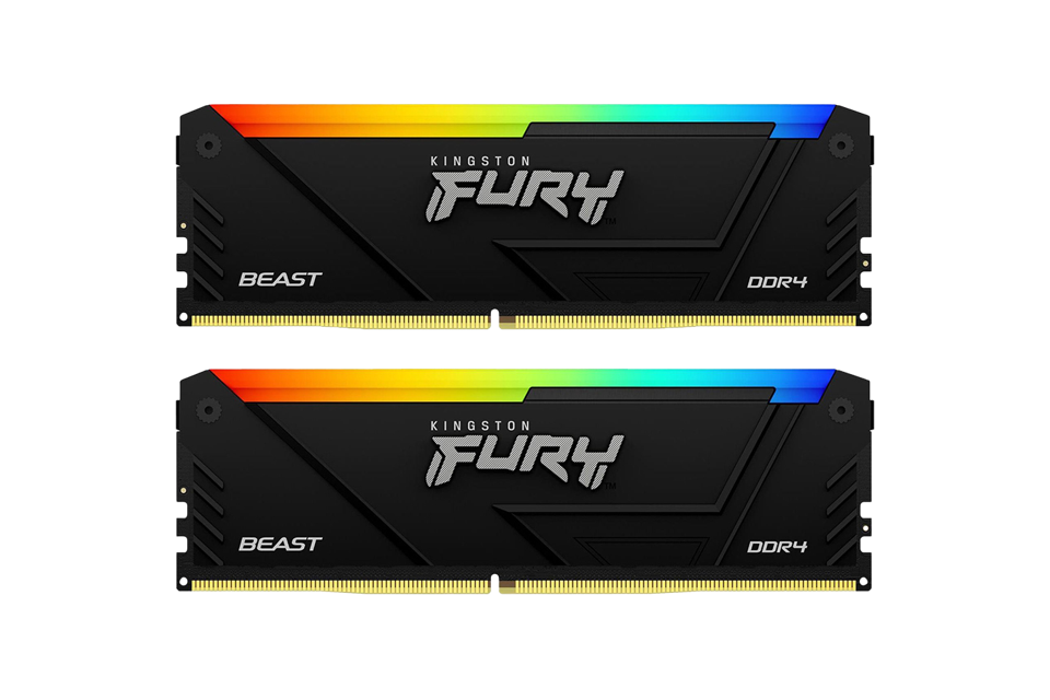 Память оперативная/ Kingston 32GB 3200MT/s DDR4 CL16 DIMM (Kit of 2) 1Gx8 FURY Beast RGB (Select Regions ONLY)