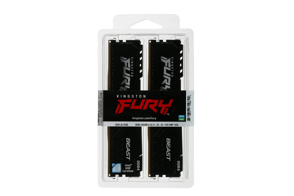 Память оперативная/ Kingston 32GB 3200MT/s DDR4 CL16 DIMM (Kit of 2) 1Gx8 FURY Beast Black (Select Regions ONLY)