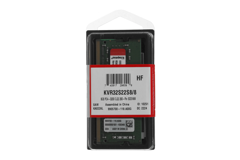Память оперативная/ Kingston 8GB 3200MHz DDR4 SODIMM Non-ECC CL22 1Rx8 (Select Regions ONLY)
