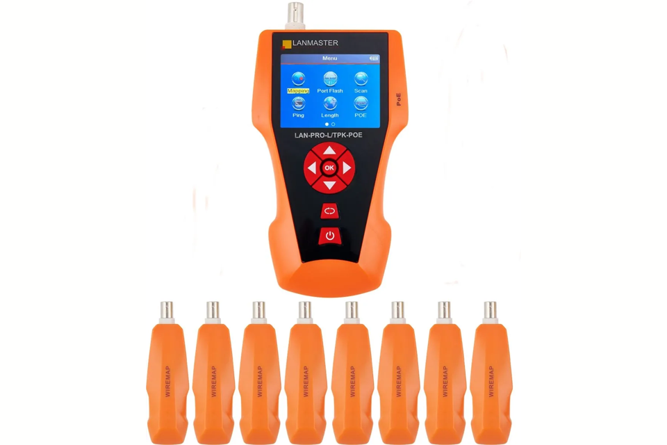 Тестер Кабельный тестер с измерением длины, трассировкой кабельных линий и определением POE, 8 ответных частей