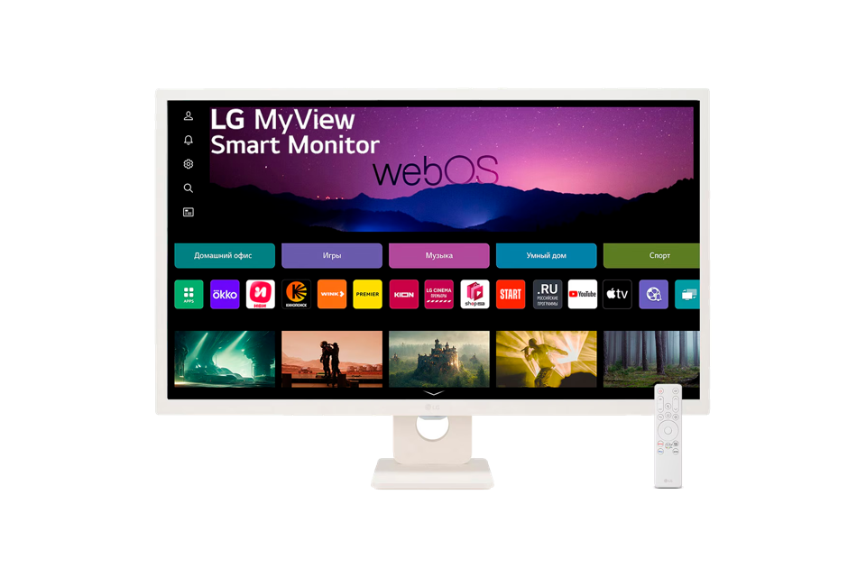 Монитор LG LCD 32SR50F-W/ LG MyView 32SR50F-W 31.5'' FHD Smart Monitor, IPS, 250cd/m2, 16:9, 5мс (GtG), 1200:1, 60Hz, 178/178, speakers 5Wx2, внешний БП, 2xHDMI, USB, VESA 100x100 mm, webOS