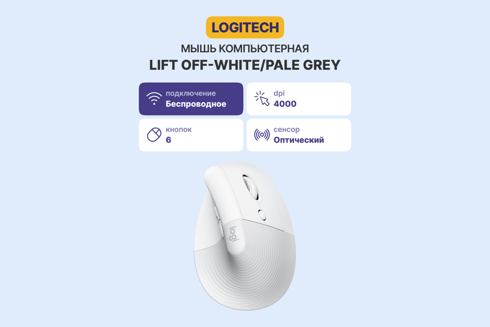 Мышь/ Logitech LIFT OFF-WHITE/PALE GREY (400-4000 dpi Bluetooth USB-ресивер Logi Bolt 4 настраиваемые кнопки)