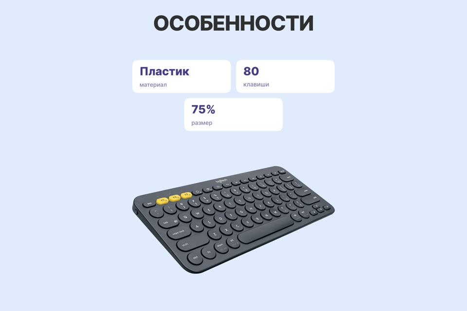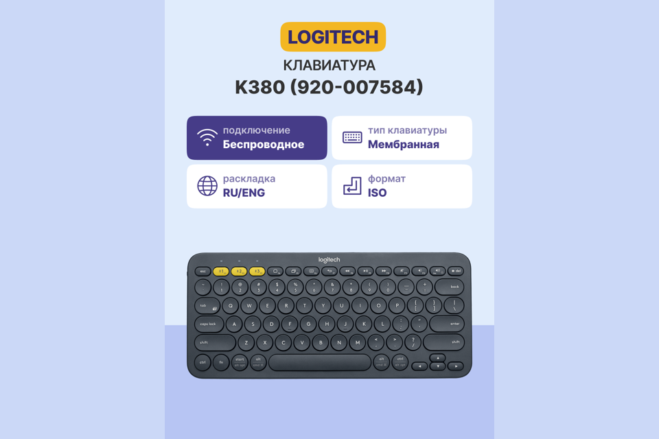 Клавиатура Logitech Клавиатура беспроводная Logitech K380 Multi-Device Bluetooth Keyboard Gray серая, копактная, 79 круглых клавиш, Bluetooth 3,0, подключение до 3-х устройств одновременно