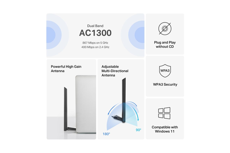 Сетевой адаптер Wi-Fi Mercusys MA30H AC1300 USB 2.0 (ант.внеш.несъем.) 1ант.