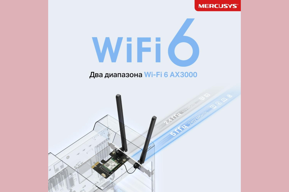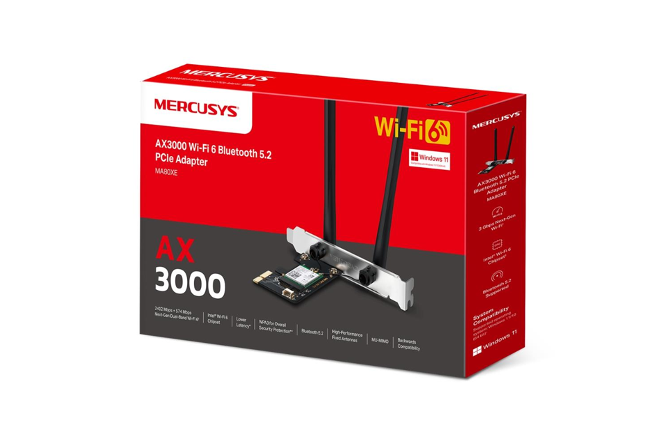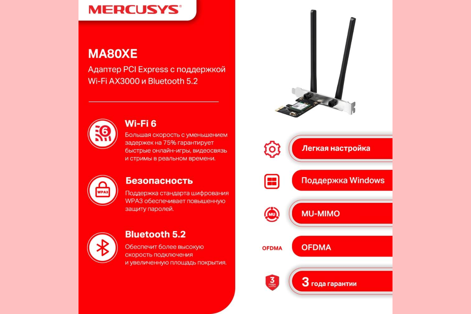 Сетевой адаптер Mercusys MA80XE Двухдиапазонный адаптер PCI Express с поддержкой Bluetooth и Wi-Fi 6 AX3000