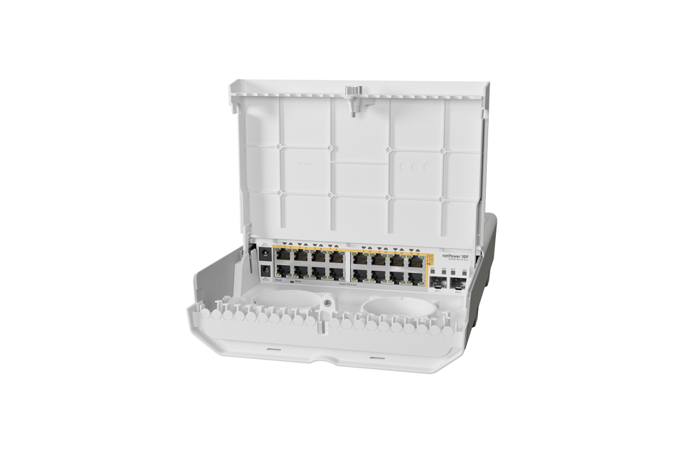 Коммутатор MIKROTIK CRS318-16P-2S+OUT with 800MHz CPU, 256MB RAM, 16x Gigabit LAN with PoE-out, 2xSFP+ cages, RouterOS L5 or SwitchOS (dual boot), outdoor enclosure, mounting kit. Блока питания в комплекте НЕТ, RTL {5} (002174)