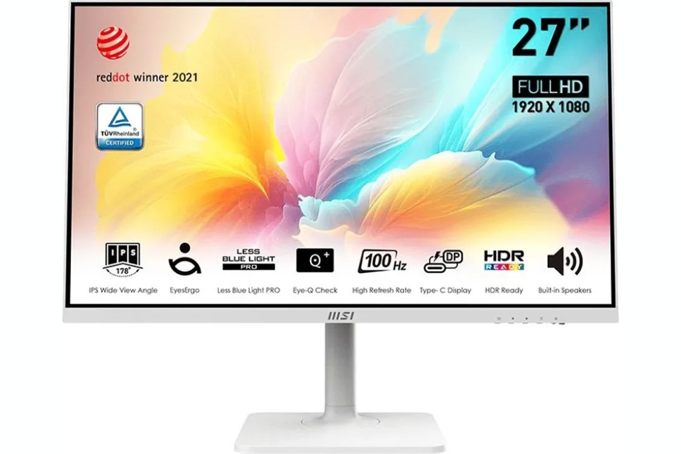 Монитор MSI Modern MD2712PW 27" 16:9 FHD(1920x1080) IPS Flat,1ms(MPRT),1000:1,100M:1,300nit,178/178,HDMI 1.4,USB-C,Speaker,Tilt,Swivel,Height,Pivot,VESA,100Hz,White(white cable),1y war-ty