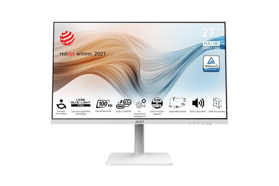Монитор/ MSI Modern MD272XPW 27" 1920x1080, IPS, 100Hz, 1ms, 100M:1, 300cd, HDMI 1.4, DP 1.2, Type-C 65w, 3xUSB, Speaker, H. adj, Pivot, 1y, White