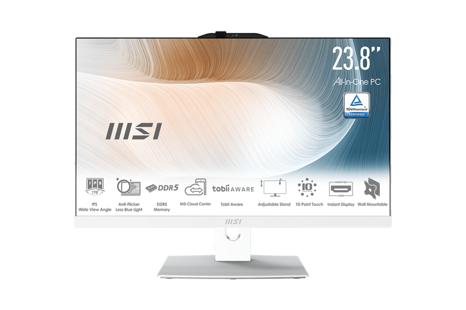 MSI Modern AM242P 1M-1022XRU 23.8"(1920x1080 IPS)/Intel Core 5 120U(1.4Ghz)/16384Mb/512PCISSDGb/noDVD/Int:Intel Graphics/Cam/BT/WiFi/-/war 1y/4.65kg/White/DOS + Wireless KB+M