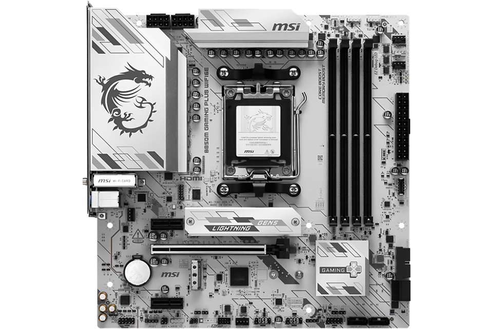 Материнская плата MSI B850M GAMING PLUS WIFI6E B850, AM5, 4*DDR5, 1*PCIEx16, 2*PCIEx1, 2*M.2, 2*TypeC, 3*USB3.2Gen2, 6*USB3.2Gen1, 4*USB2.0, 4*SATA3.0, 2.5G, DP, HDMI, M-ATX, RTL