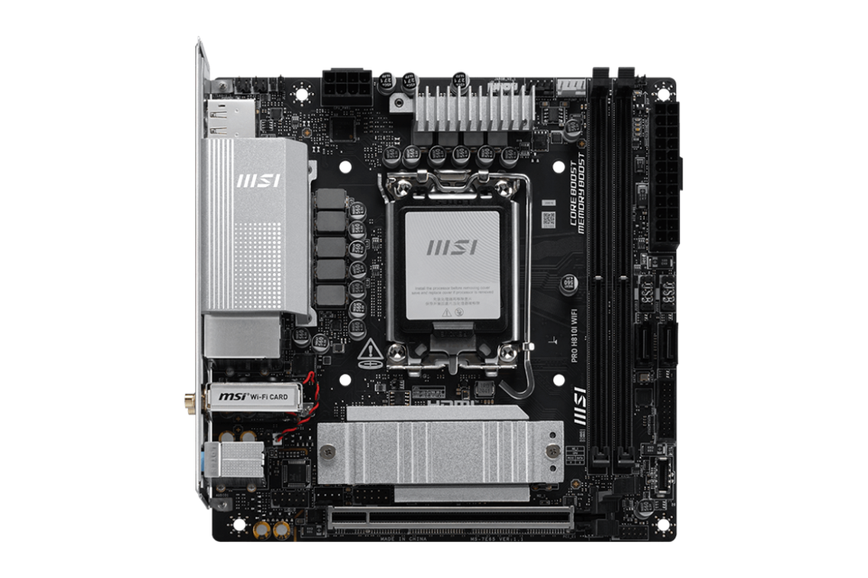 Материнская плата MSI PRO H810I WIFI H810, LGA1851, 2*DDR5, 1*PCIEx16, 1*M.2, 2*TypeC, 4*USB3.2Gen1, 6*USB2.0, 2*SATA3.0, 2.5G, DP, HDMI, ITX, RTL