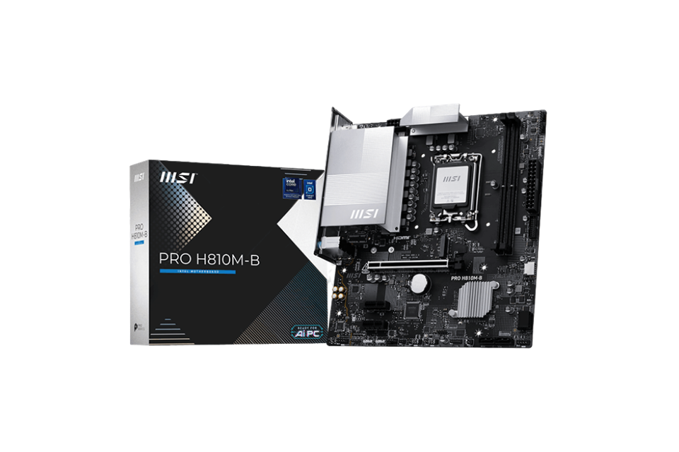 Материнская плата MSI PRO H810M-B H810, LGA1851, 2*DDR5, 1*PCIEx16, 2*PCIEx1, 1*M.2, 1*TypeC, 4*USB3.2Gen1, 8*USB2.0, 4*SATA3.0, 2.5G, DP, HDMI, M-ATX, RTL