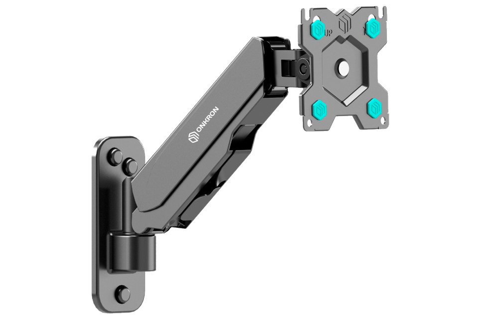 Кронштейн НАСТЕННЫЙ для монитора ONKRON/ 13-34" 1 колено, макс. 100*100, струбцина, наклон -35?+35? поворот 180?, расстояние от стены 85-361мм, макс.перемещение по вертикали 280мм, кабель-канал, пружина, нагрузка 1-8кг