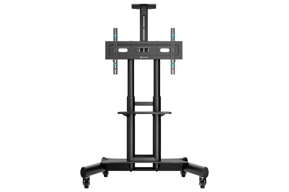 Мобильная стойка ONKRON на 1 ТВ/ 40-70" от 200х200 до 400х600 наклон 0? поворот 0? макс нагр 55,5кг Высота 1200-1500мм, кабель-канал, регулировка полки по высоте, колесики с блокировкой, черная