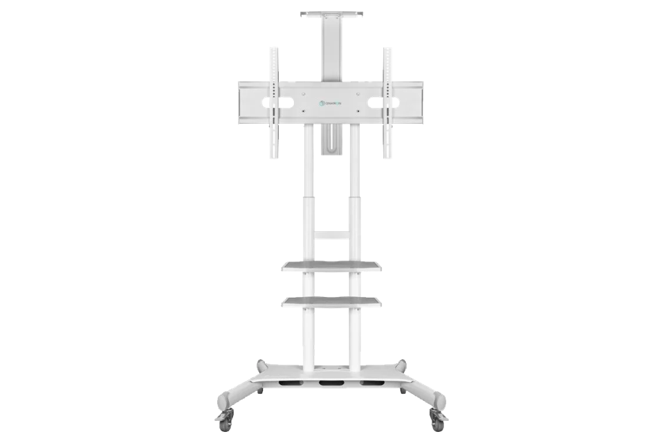 Мобильная стойка ONKRON на 1 ТВ/ 50-86" от 300х100 до 800х500, макс нагр 105,9кг, 2 полки, высота 1350-1650мм,, белая