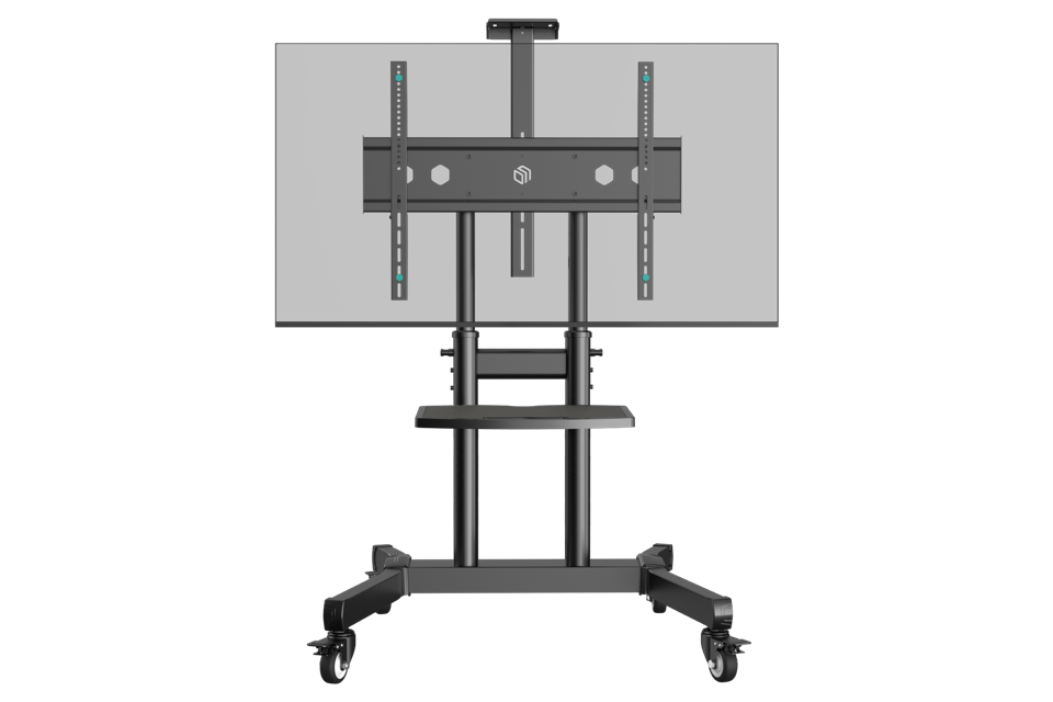 Мобильная стойка ONKRON на 1 ТВ/ 50-90" от 200х200 до 800х600, макс нагр 90,9кг, 1 полка, Угол наклона: -+5°~ -5°, высота 1215-1680мм, черный