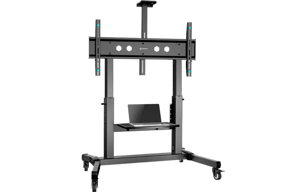 Мобильная стойка ONKRON на 1 ТВ/ 50-100" от 200х200 до 1000х600, макс нагр 120кг, 1 полка для AV, полка для камеры, кабель-канал, высота 1234-1685мм, черный