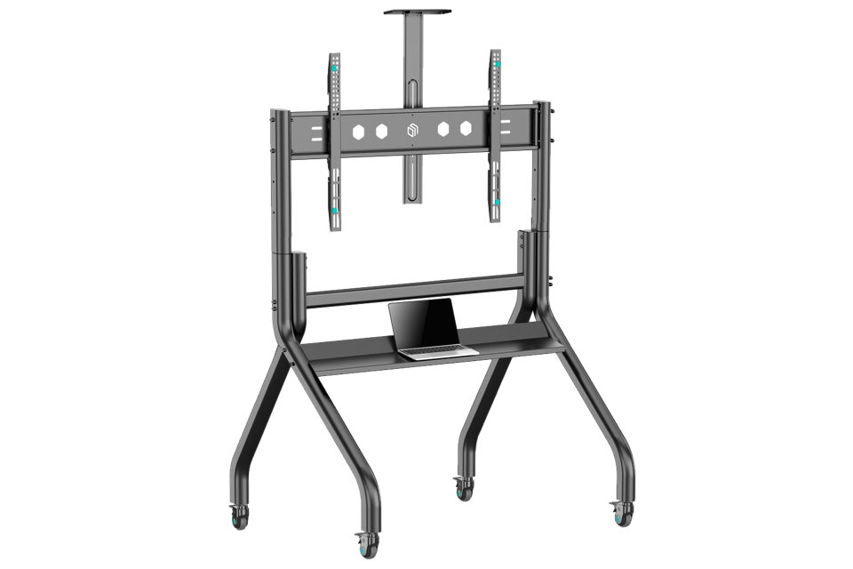 Мобильная стойка ONKRON на 1 ТВ/ 50-100" от 200х200 до 1000х600, макс нагр 120кг, регулируемая 1 полка, высота 1234-1685мм, колеса с блокировкой, черный