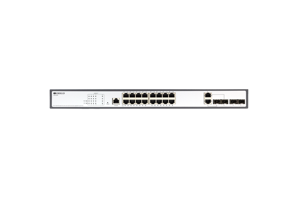 Коммутатор ORIGO Управляемый L2 PoE-коммутатор, 16x1000Base-T PoE, 2x1000Base-X SFP, 2xCombo 1000Base-T/SFP, PoE-бюджет 250 Вт, консольный порт RJ-45, комплект для установки в 19" стойку
