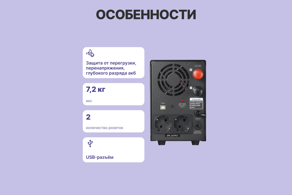 | Выходная мощность (полная) | 800 ВА |