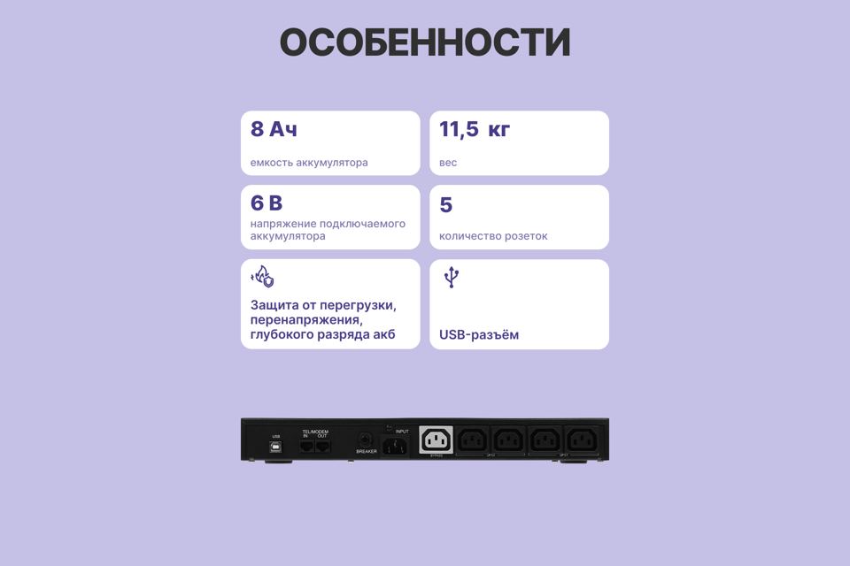 | Количество разъёмов IEC C13 | 5 |