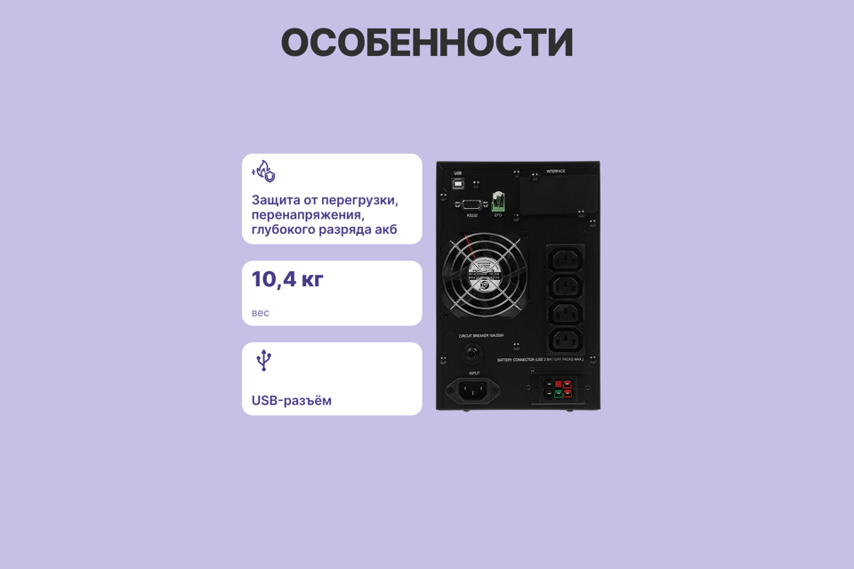 Источник бесперебойного питания Powercom MACAN, On-Line, 1000VA / 1000W, Tower, IEC, LCD, Serial+USB, SmartSlot, подкл. доп. батарей