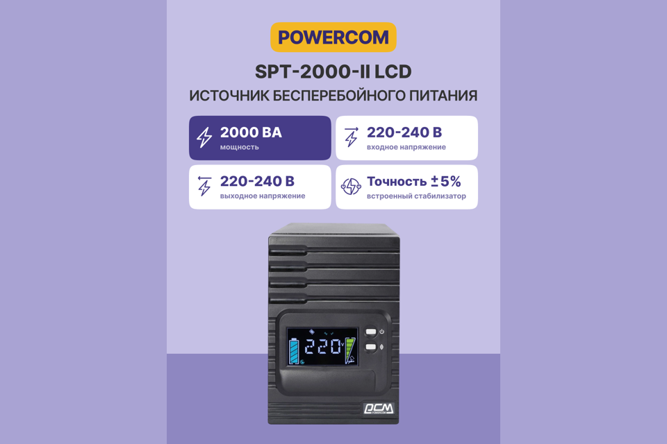 Источник бесперебойного питания Powercom Smart King Pro+ SPT-2000, Line-Interactive, LCD, 2000VA/1600W, Tower, 8*IEC320-C13+С19, SNMP Slot, black (1152568)