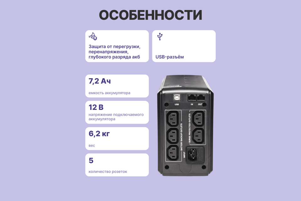 | Количество разъёмов IEC C13 | 5 |