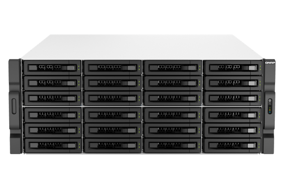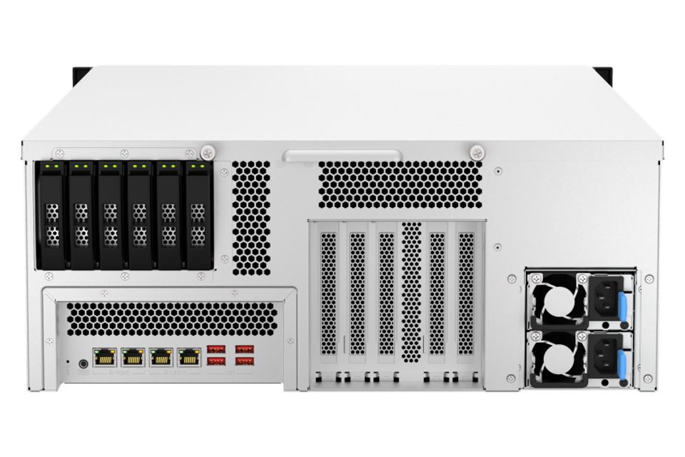 Сетевое хранилище без дисков/ ENTERPRISE QNAP TS-h3087XU-RP-E2378-64G QuTS hero NAS, Xeon E-2378 8C 16T 2.6-4.8GHz, 64 GB ECC DDR4 (4 x 16 GB) up to 128GB (4 x 32 GB), 30-bay (24 x 3.5-inch SATA + 6 x 2.5-inch SATA), 2x10 GbE, 2x2.5 GbE, 3xPCIe Slot (2 x Gen4 x4 +1 x Gen 4 x8), 4xUSB 3.2 Gen 2 (10Gbps), 4U rackmount, 2 PSU. W/o RAIL-A02-90