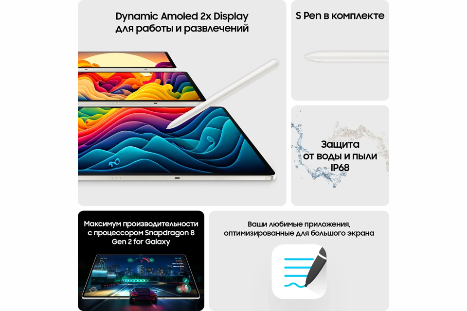 Планшет Samsung Galaxy Tab S9+ SM-X810 8 Gen 2 (3.36) 8C RAM12Gb ROM512Gb 12.4" AMOLED 2X 2800x1752 Android 13 бежевый 13Mpix 12Mpix BT WiFi Touch microSD 1Tb 10090mAh
