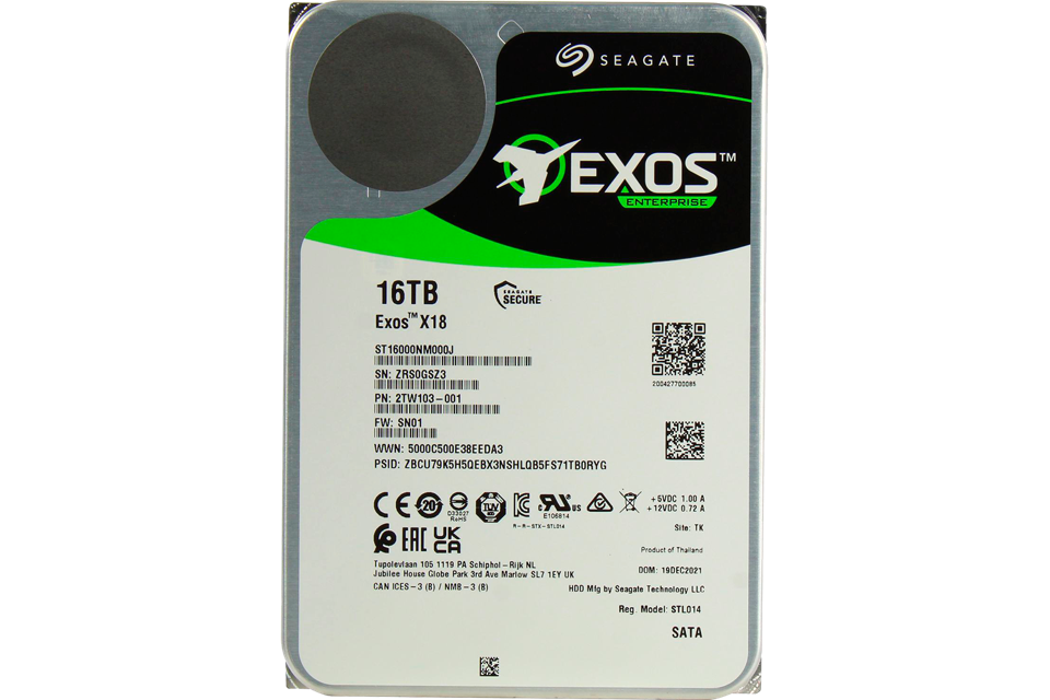 Жесткий диск Seagate Exos X18 HDD 3.5" SATA 16Tb, 7200 rpm, 256Mb buffer, 512e/4kn, CMR, ST16000NM000J, 1 year (Восстановленные)