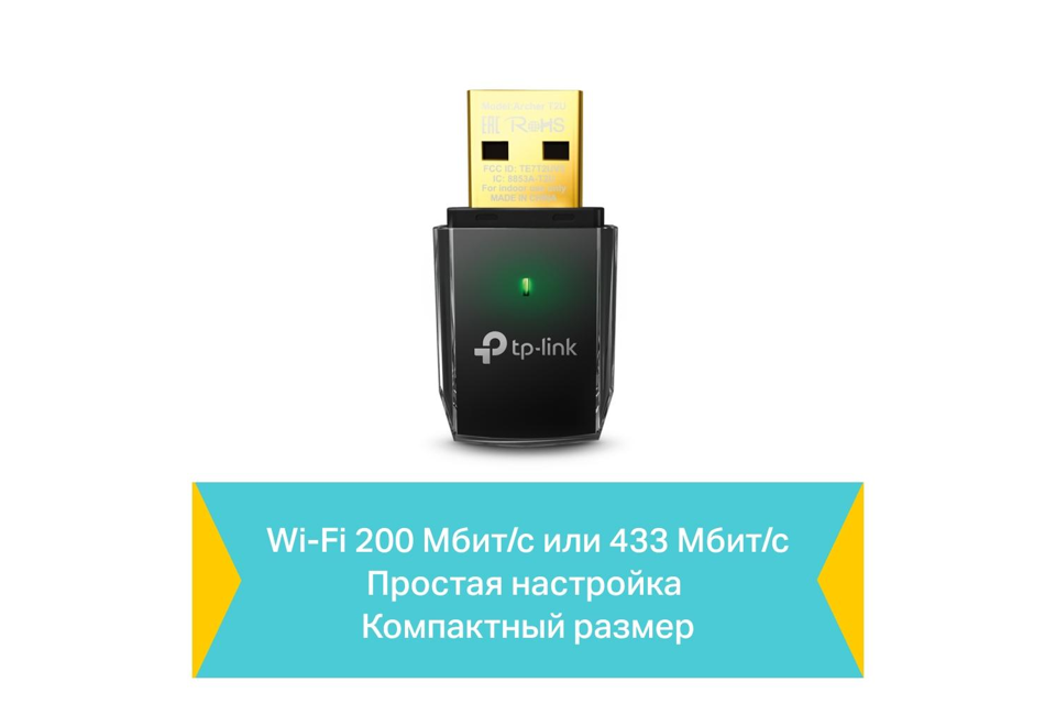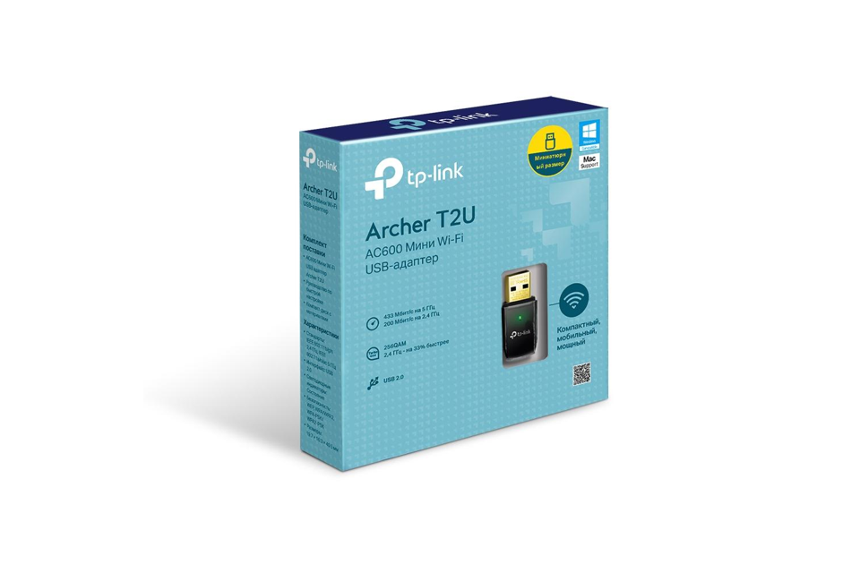 Сетевой адаптер TP-LINK Archer T2U AC600 Двухдиапазонный Wi-Fi USB-адаптер, чипсет Mediatek, 1T1R, до 433 Мбит/с на 5 ГГц или до 150 Мбит/с на 2,4 ГГц, 802.11ac/a/b/g/n, кнопка WPS, интерфейс USB 2.0, встроенная антенна,(089917), RTL {60}