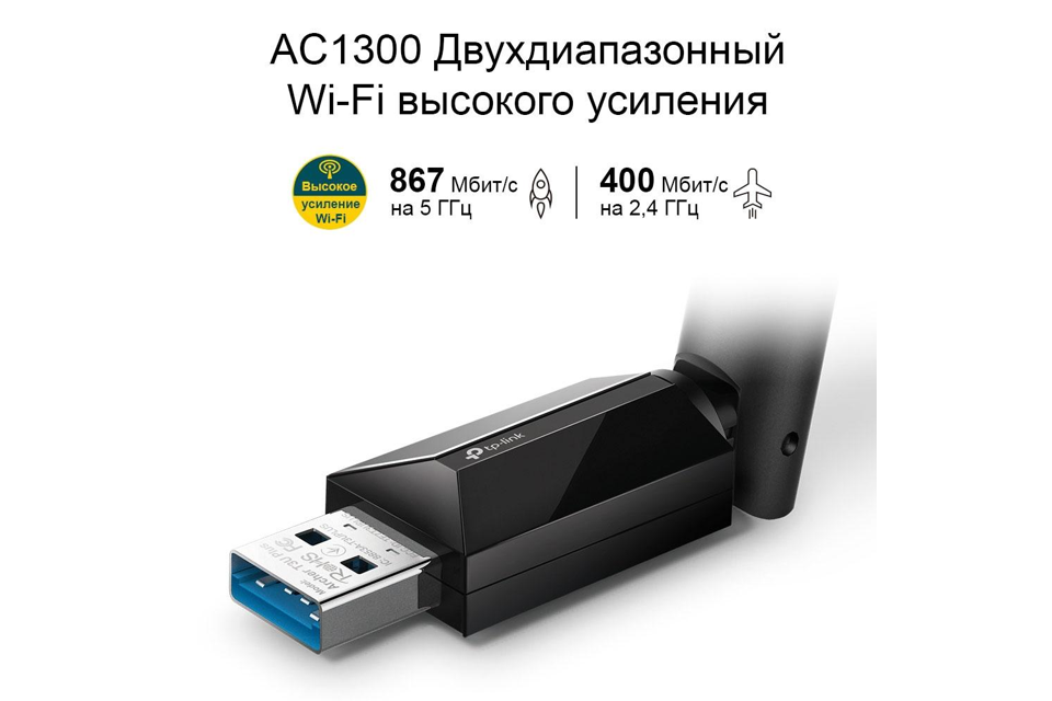 Сетевой адаптер TP-LINK Archer T3U Plus АС1200/АС1300 Двухдиапазонный USB адаптер, до 867 Мбит/c на 5 ГГц и ли до 300 Мбит/c на 2.4ГГц, одна антенна высокого усиления, USB 3.0, поддержка wave 2 MU-MIMO. (053413) {40}
