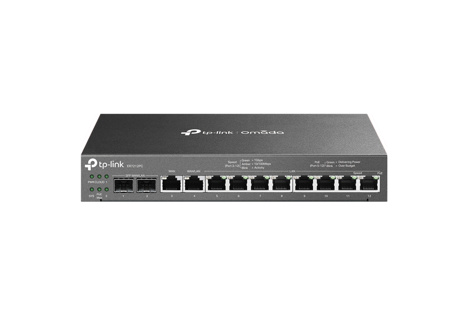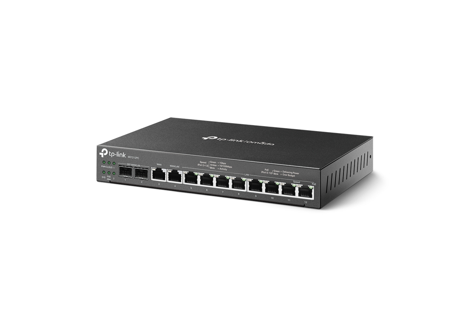 Сетевое оборудование TP-Link ER7212PC, Гигабитный VPN-маршрутизатор Omada с портами PoE+ и контроллером, 2 гиг. порта SFP WAN/LAN, 1 гиг. порт RJ45 WAN, 1 гига. порт RJ45 WAN/LAN, 8 гиг. портов RJ45 (после тестирования)