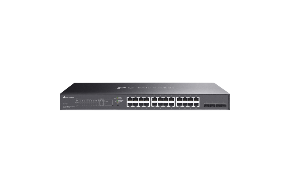Коммутатор TP-LINK SG2428P JetStream 28-портовый гигабитный Smart коммутатор с 24 портами PoE+, 24 гигабитных порта PoE+, 4 гигабитных SFP-слота, 802.3at/af, бюджет PoE — 250 Вт, стальной корпус 1U для монтажа в 19-дюймовую стойку
