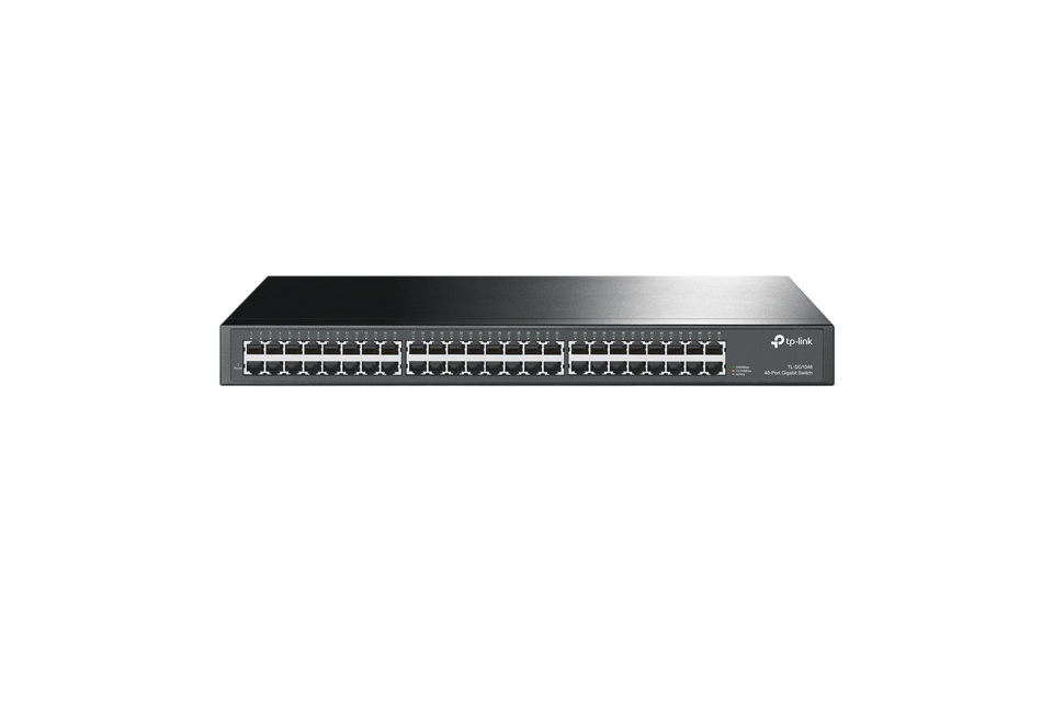 Сетевое оборудование TP-Link TL-SG1048, 48-портовый гигабитный коммутатор, 48 портов RJ45 10/100/1000 Мбит/с, 1U 19-дюймовый монтируемый в стойку стальной корпус