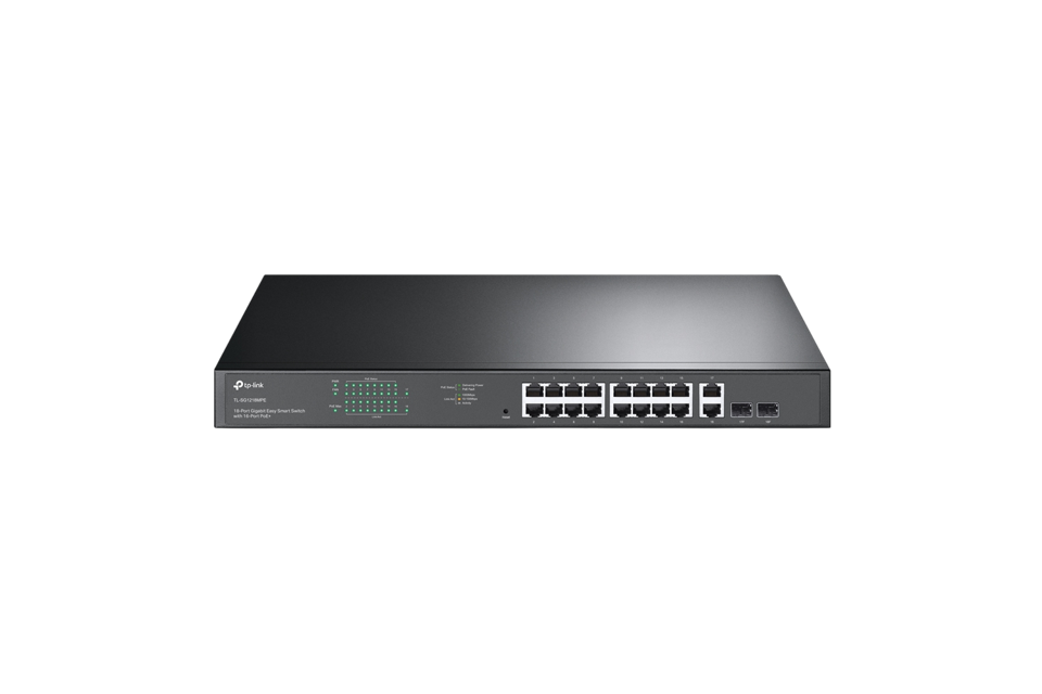 Коммутатор TP-LINK TL-SG1218MPE 16-портовый гигабитный PoE Easy Smart коммутатор, 16 RJ45 портов 10/100/1000Мбит/с, поддержка 802.3af/at PoE на портах 1-16, PoE-бюджет 250 Ватта, настолькой/монтируемый в стойку, поддержка 802.1q VLAN, IGMP, LAG