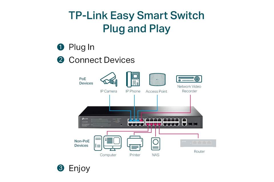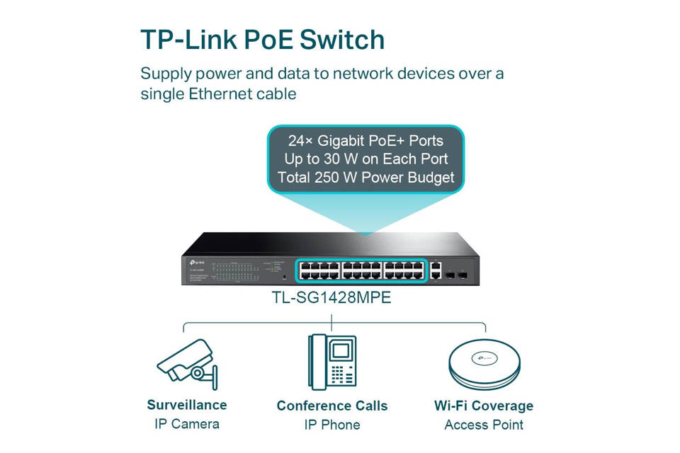 Коммутатор TP-LINK TL-SG1428PE 28-портовый Easy Smart коммутатор c 24 портами PoE+, 26 RJ45 портов 10/100/1000 Мбит/с «и 2 независимых SFP-слота, поддержка 802.3af/at, PoE-бюджет 250Вт, режим приоритезации портов, функция PoE Auto-Recovery, монтируемый в стойку 19» {4}»