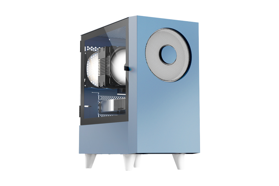 Корпус без блока питания/ Case WIZMAX EM1, Mini-Tower, TG, 1x160mm + 1x120mm LED, 1xUSB-A 3.0 + 2xUSB-A 2.0, mATX, mITX, Woofer Blue
