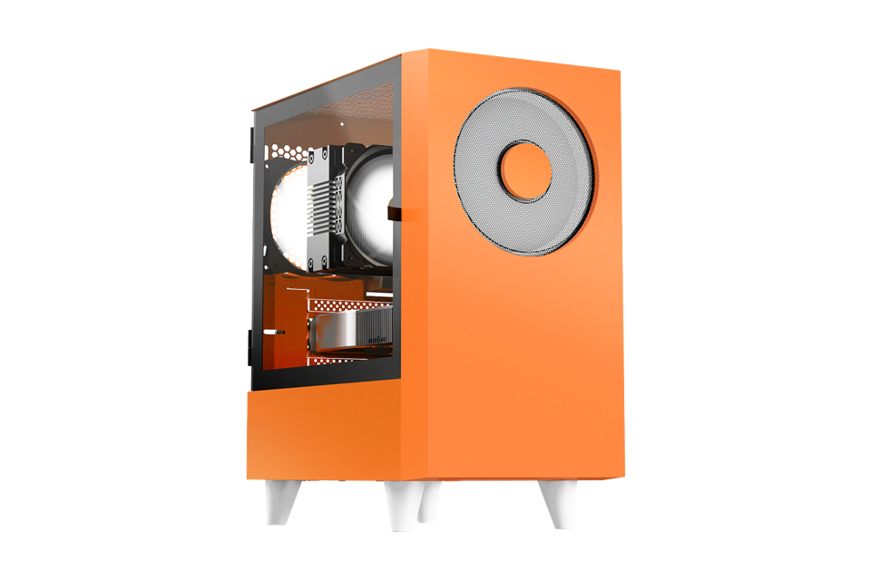 Корпус без блока питания/ Case WIZMAX EM1, Mini-Tower, TG, 1x160mm + 1x120mm LED, 1xUSB-A 3.0 + 2xUSB-A 2.0, mATX, mITX, Woofer Orange